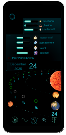 Система объединяет точную математику и небесные циклы для ежедневного самонаблюдения. Она не предсказывает будущее и не дает прямых инструкций. Вместо этого она подсвечивает закономерности и тенденции, помогая вам планировать жизнь более осознанно.